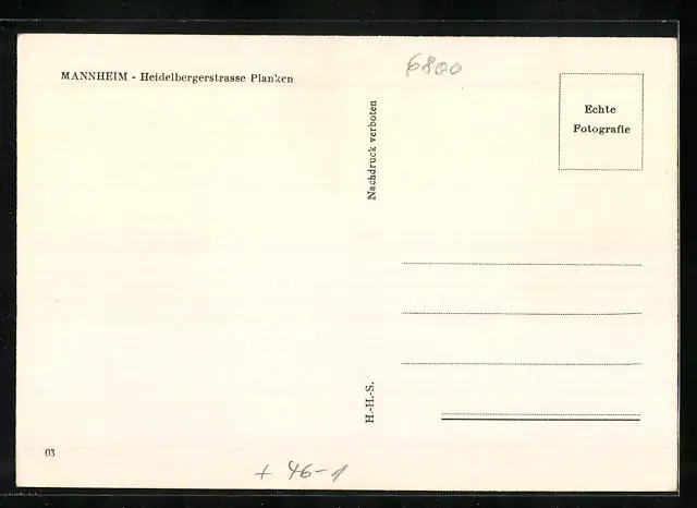 Personenbezogene Daten auf der Rückseite der Karte wurden durch blauen Textmarker unkenntlich gemacht. Die blauen Stellen sind auf die Vorderseite durchgeweicht und wirken sich negativ auf das Postkartenfoto aus