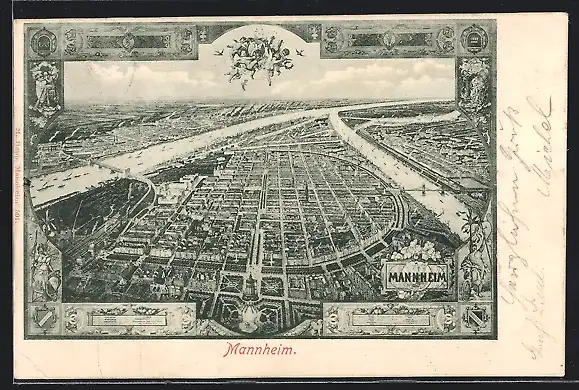 AK Mannheim, Historische Ansicht aus der Vogelschau