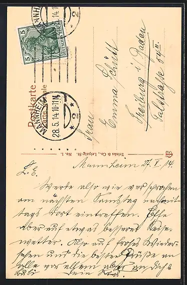 alte Ansichtskarte, gelaufen 1914, guter Zustand