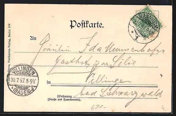 alte Ansichtskarte, gelaufen 1897, guter Zustand