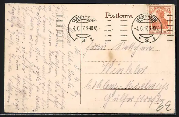 gelaufen 1917, Stempelspur, fleckig links oben und rechts unten, guter Zustand