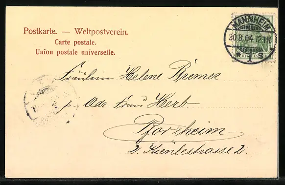 alte Ansichtskarte, gelaufen 1904, Stempelspur, guter Zustand