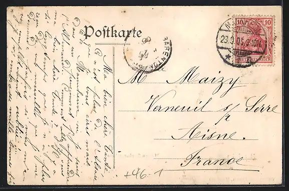 alte Ansichtskarte, gelaufen 1906, Eckknick re. oben, guter Zustand