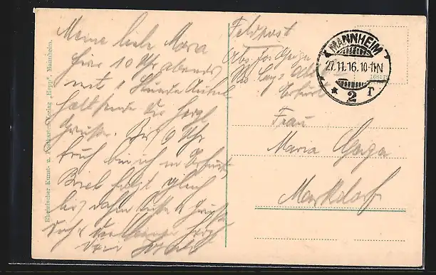 alte Ansichtskarte, gelaufen 1916, rückseitig Oberflächenschaden, guter Zustand