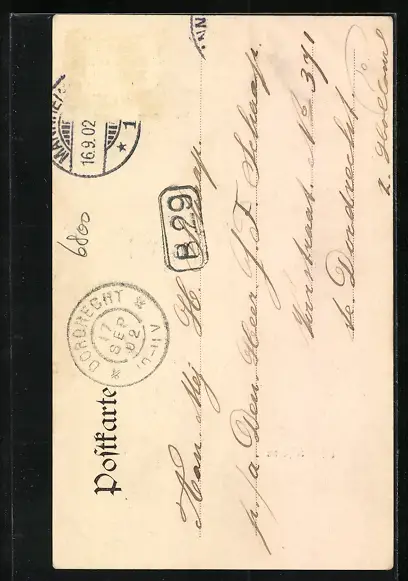 gelaufen 1902, Briefmarke entfernt, guter Zustand