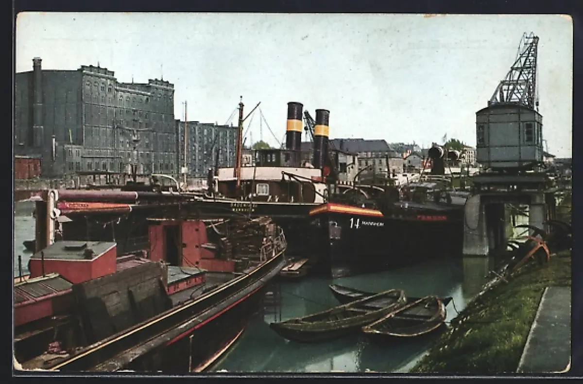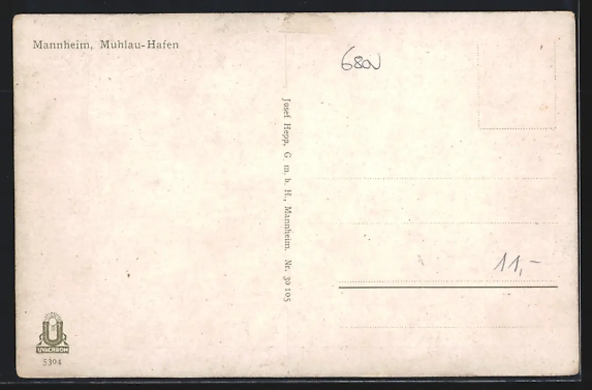 AK Mannheim, Mühlau-Hafen mit Schiffen