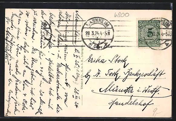 alte Ansichtskarte, gelaufen 1924, Stempelspur, guter Zustand