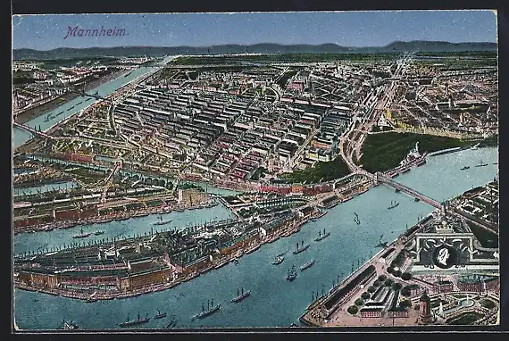 AK Mannheim, Ortsansicht aus der Vogelschau