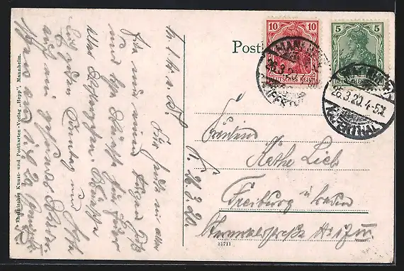 alte Ansichtskarte, gelaufen 1920, Eckknick li. oben, guter Zustand