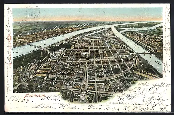 AK Mannheim, Ortsansicht aus der Vogelschau