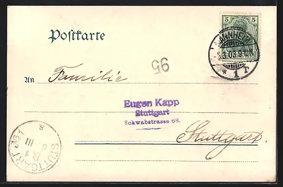alte Ansichtskarte, gelaufen 1903, Stempelspur, guter Zustand
