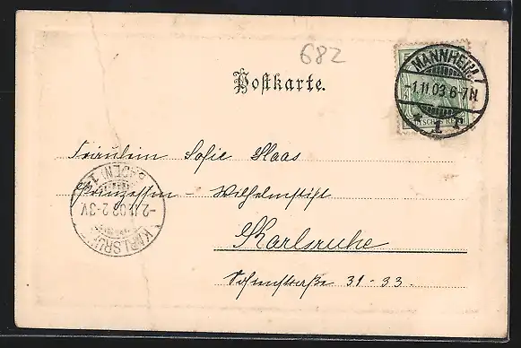 alte Ansichtskarte, gelaufen 1903, Bugspur re. senkrecht, guter Zustand