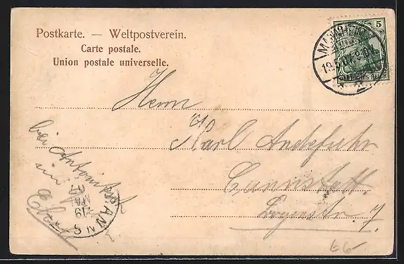 alte Ansichtskarte, gelaufen 1907, Eckknicke unten, guter Zustand