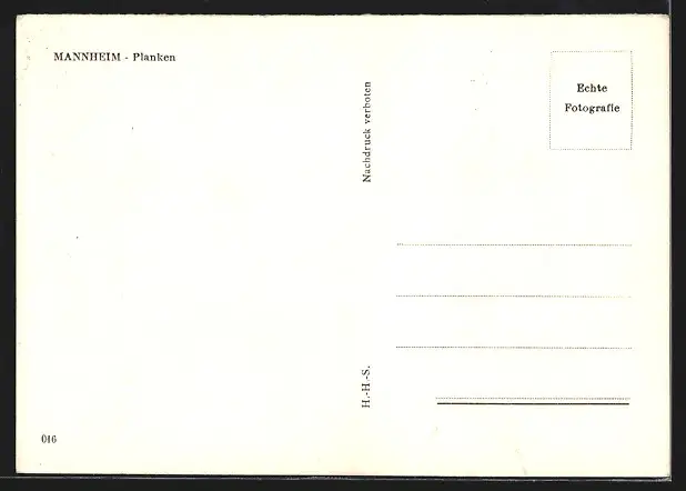 Personenbezogene Daten auf der Rückseite der Karte wurden durch blauen Textmarker unkenntlich gemacht. Die blauen Stellen sind auf die Vorderseite durchgeweicht und wirken sich negativ auf das Postkartenfoto aus