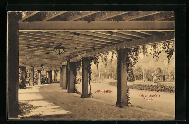 AK Mannheim, Pergolen auf dem Friedrichsplatz
