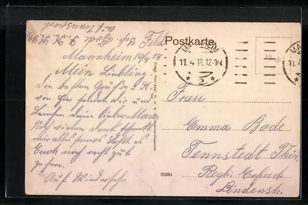 alte Ansichtskarte, gelaufen 1918 als Feldpost, guter Zustand