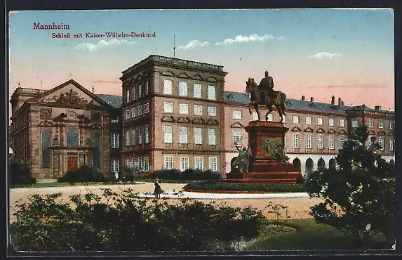 AK Mannheim, Schloss mit Kaiser-Wilhelm-Denkmal