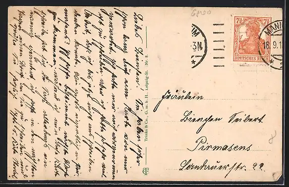 alte Ansichtskarte, gelaufen, Briefmarke entfernt, Eckknick unten li., guter Zustand