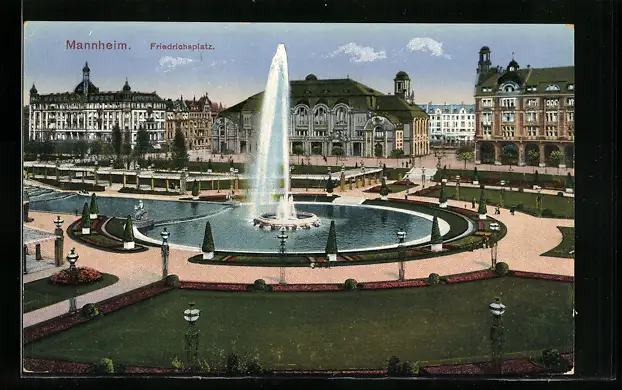 AK Mannheim, Springbrunnen am Friedrichsplatz