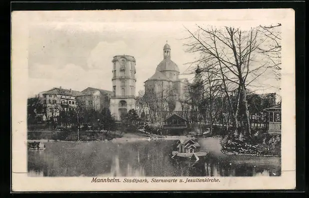 AK Mannheim, Stadtpark, Sternwarte u. Jesuitenkirche