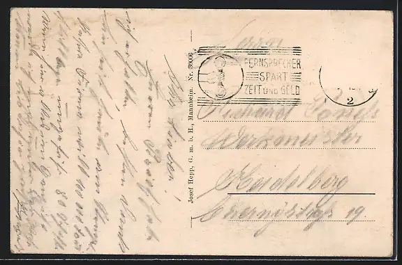 alte Ansichtskarte, gelaufen, Briefmarke entfernt, guter Zustand