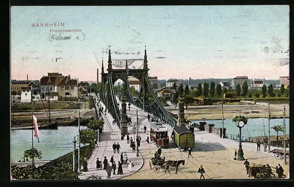 AK Mannheim, Strassenbahn auf der Friedrichsbrücke