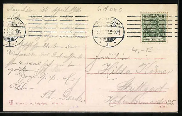 alte Ansichtskarte, gelaufen 1911, Stempelspur, guter Zustand
