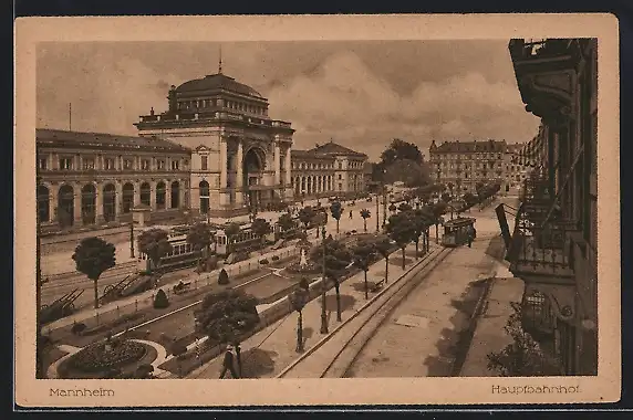 AK Mannheim, Strassenbahn vor dem Hauptbahnhof