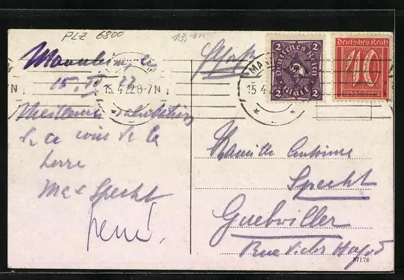 alte Ansichtskarte, gelaufen 1922, Stempelspur, guter Zustand