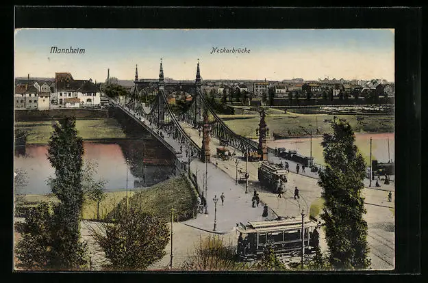 AK Mannheim, Strassenbahnen auf der Neckarbrücke
