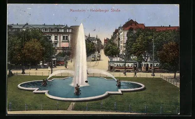 AK Mannheim, Strassenbahnen in der Heidelberger Strasse
