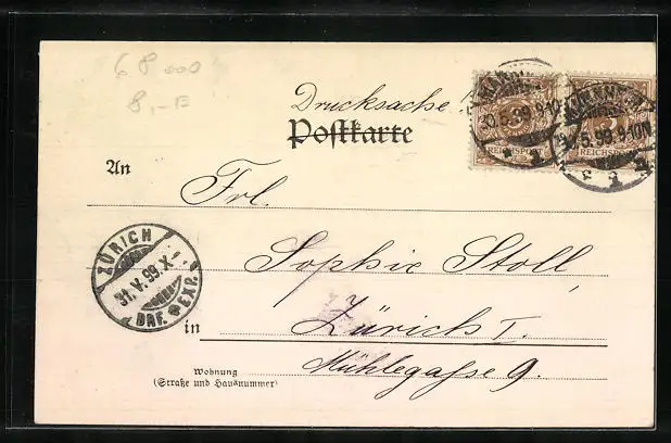 alte Ansichtskarte, gelaufen 1899, guter Zustand