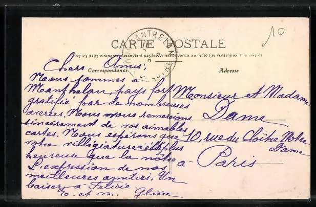 Personenbezogene Daten auf der Rückseite der Karte wurden durch blauen Textmarker unkenntlich gemacht. Die blauen Stellen sind auf die Vorderseite durchgeweicht und wirken sich negativ auf das Postkartenfoto aus