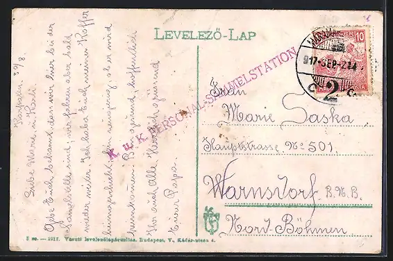 alte Ansichtskarte, gelaufen 1917, Eckknicke oben, guter Zustand