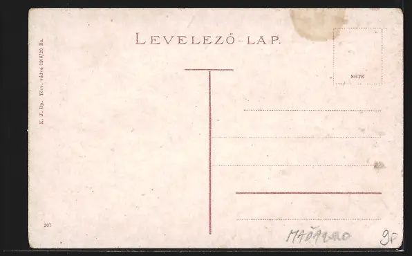 Personenbezogene Daten auf der Rückseite der Karte wurden durch blauen Textmarker unkenntlich gemacht. Die blauen Stellen sind auf die Vorderseite durchgeweicht und wirken sich negativ auf das Postkartenfoto aus