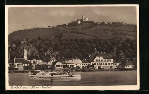 AK Marbach a. d. Donau, Ortsansicht mit Maria Taferl