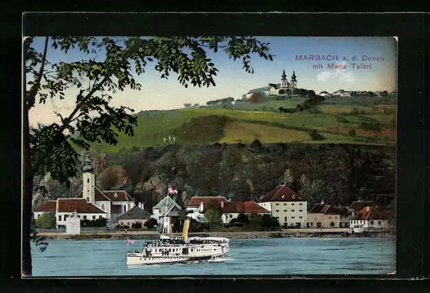 AK Marbach a. d. Donau, Teilansicht mit Wallfahrtskirche Maria Taferl