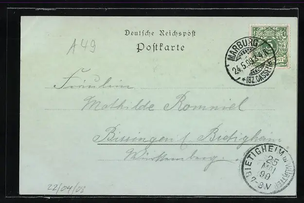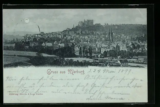 alte Ansichtskarte, gelaufen 1899, Eckknick li. unten u. re. oben, guter Zustand