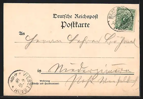 alte Ansichtskarte, gelaufen 1899, guter Zustand
