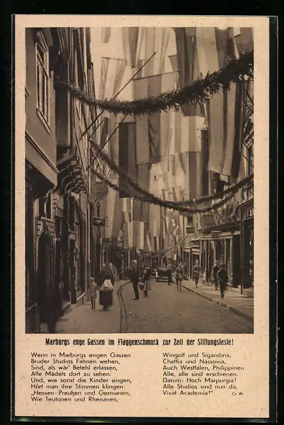 AK Marburg, Wettergasse im Flaggenschmuck