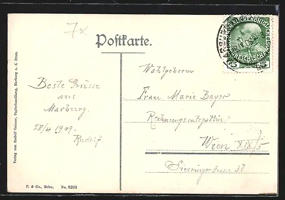 alte Ansichtskarte, gelaufen 1909, Stempelspur, guter Zustand