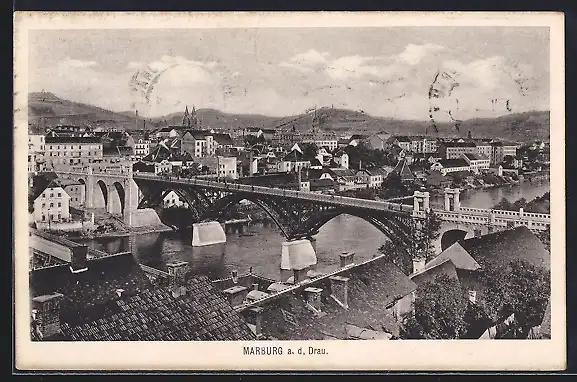 AK Marburg a. d. Drau, Partie mit Brücke