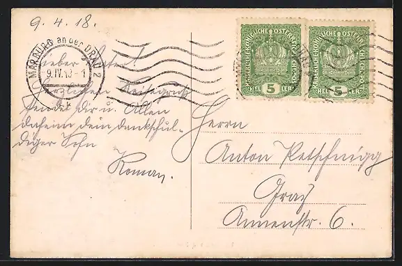 alte Ansichtskarte, gelaufen 1918, Stempelspur, guter Zustand