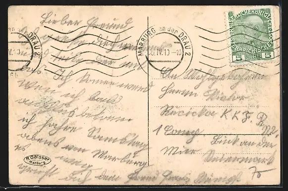 alte Ansichtskarte, gelaufen 1910, Stempelspur, Eckknick re. oben, guter Zustand