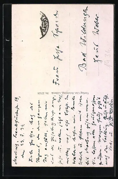 alte Ansichtskarte, gelaufen 1934, Briefmarke entfernt, Eckknick u. Einriss unten li., guter Zustand