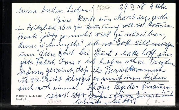 ungelaufen, Rückseite beschrieben 1958, guter Zustand