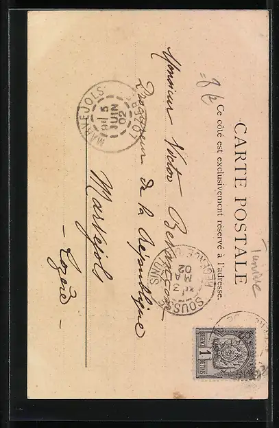 alte Ansichtskarte, gelaufen 1902, Eckknick oben re., guter Zustand