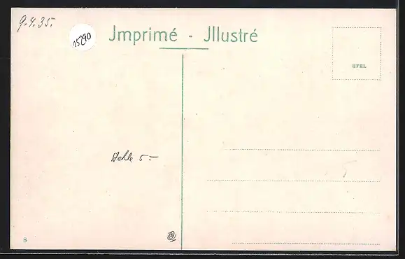 Personenbezogene Daten auf der Rückseite der Karte wurden durch blauen Textmarker unkenntlich gemacht. Die blauen Stellen sind auf die Vorderseite durchgeweicht und wirken sich negativ auf das Postkartenfoto aus