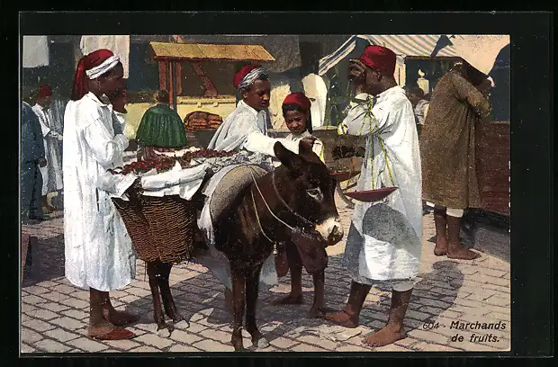AK Marchands de fruits, Obsthändler mit Last-Esel
