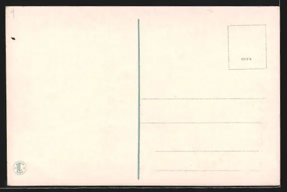 Personenbezogene Daten auf der Rückseite der Karte wurden durch blauen Textmarker unkenntlich gemacht. Die blauen Stellen sind auf die Vorderseite durchgeweicht und wirken sich negativ auf das Postkartenfoto aus